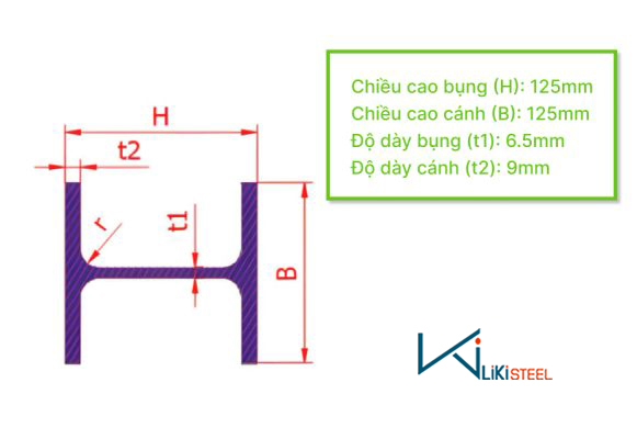 Thông số kỹ thuật của thép hình H125 được Liki Steel cập nhật bên dưới.